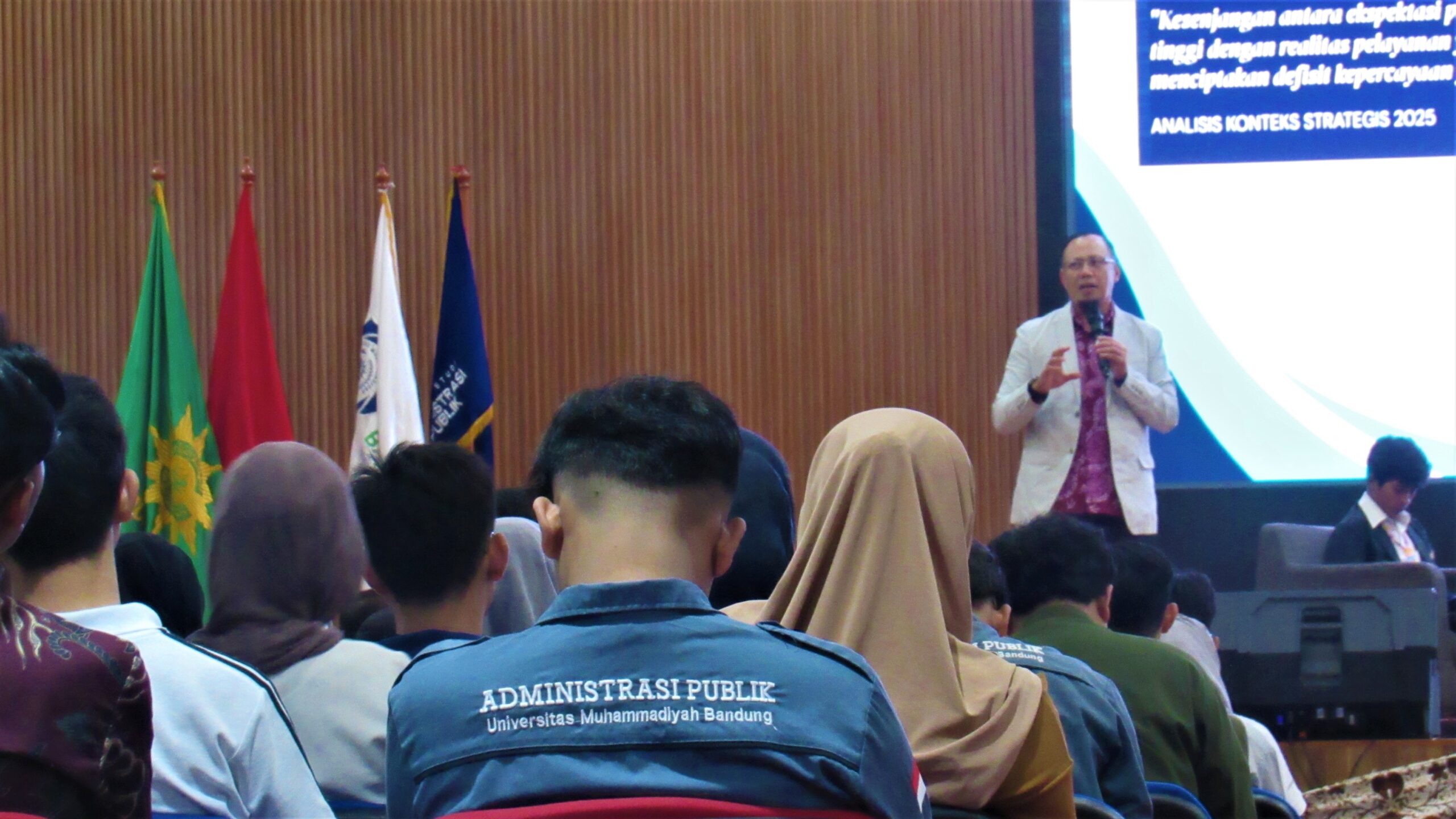 Menyikapi urgensi tersebut, Program Studi Administrasi Publik Universitas Muhammadiyah (UM) Bandung menyelenggarakan kegiatan Kuliah Bareng Birokrat bertajuk “Rekonstruksi Kepercayaan Publik melalui Transformasi Birokrasi Terbuka yang Strategis, Solutif, dan Implementatif”, bertempat di Auditorium KH Ahmad Dahlan, Universitas Muhammadiyah Bandung, pada Kamis (08/01/2026).