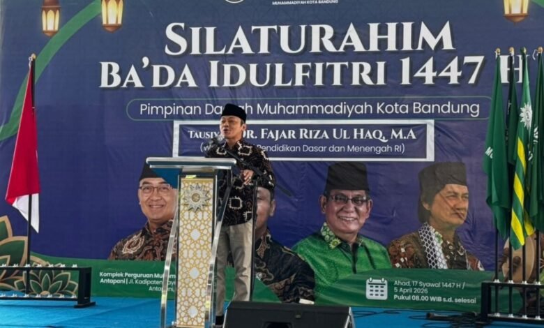 Hal tersebut disampaikan Wakil Menteri Pendidikan Dasar dan Menengah Fajar Riza Ul Haq dalam Silaturahim Bakda Idul Fitri 1447 Hijriah yang diselenggarakan oleh Pimpinan Daerah Muhammadiyah (PDM) Kota Bandung pada Ahad (05/04/2026).